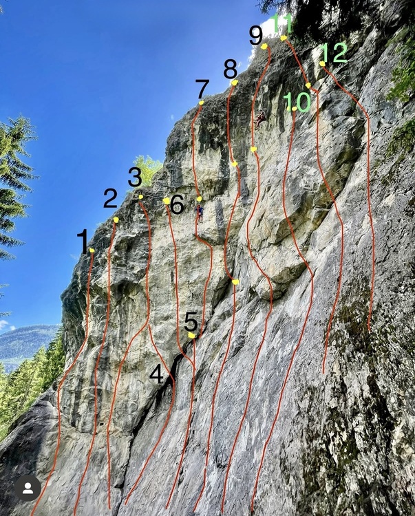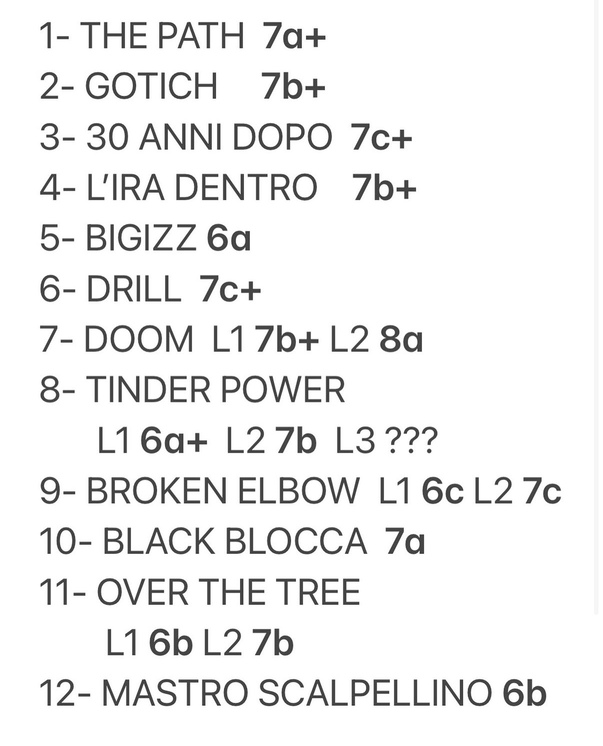 nella primavera del 2024 Niccolò Bruni in solitaria ha incominciato il restauro di questa vecchia falesia nata nel 1994 da parte di Rudy Bucella, ridandogli vita e ampliando notevolmente l'offerta dei tiri. Nella parte strapiombante i tiri sono all'60\80% scavati altrimenti ii gradi sarebbero ben altri data la forte strapiombata, tuttavia questo non disturba affatto la piacevole scalata, la roccia ottimamente ripulita dal manico "mastro scalpellino" Nik e itinerari di tutti gli stili offrono un mix perfetto per un bel allenamento!!